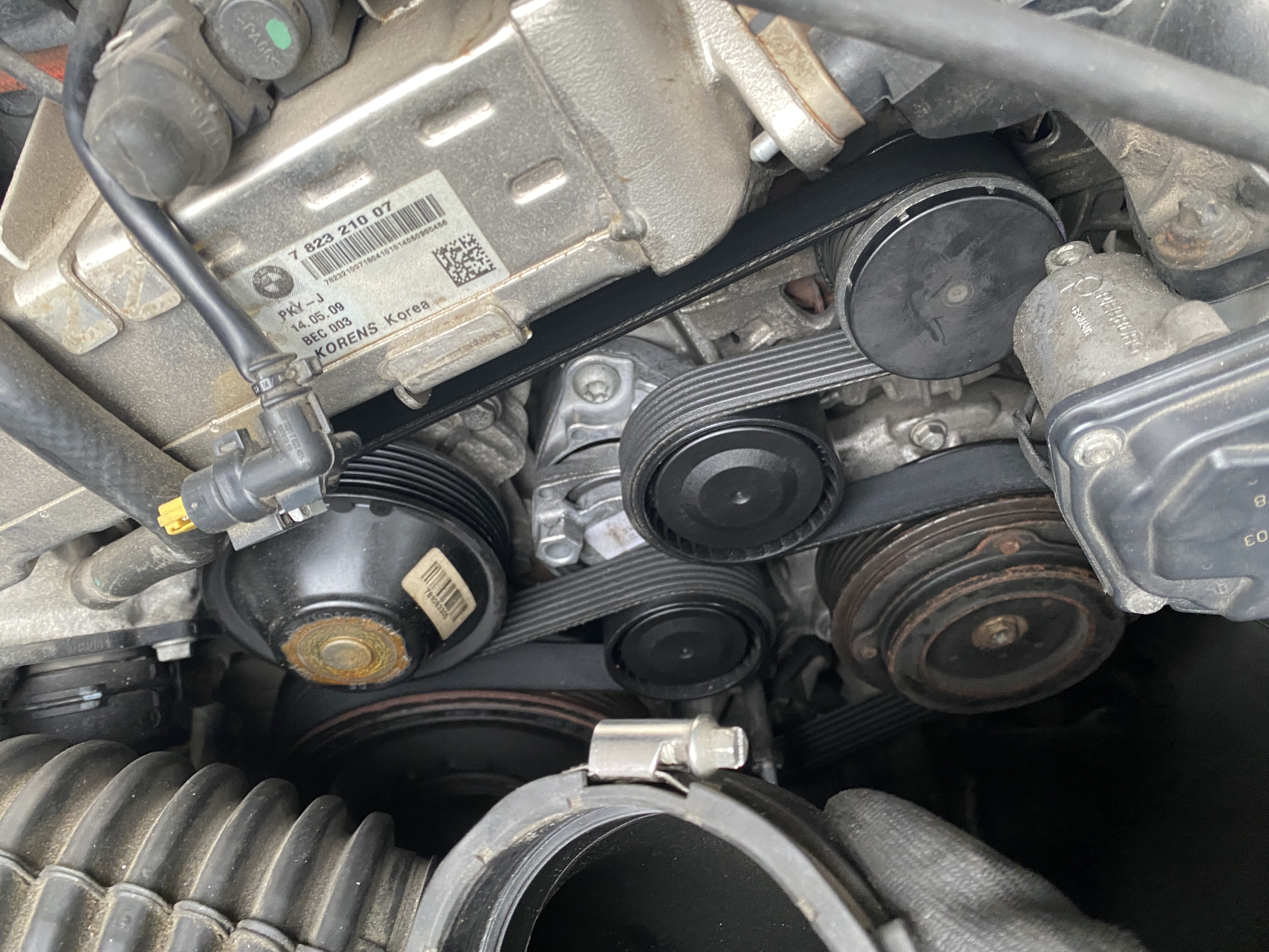 텐셔너와 겉밸트 교환했으나 소음이 사라지지 않음. 실리콘스프레이도 시도했으나 소음이 다시 생겨 크랭크 풀리 교체까지 가게되었다.