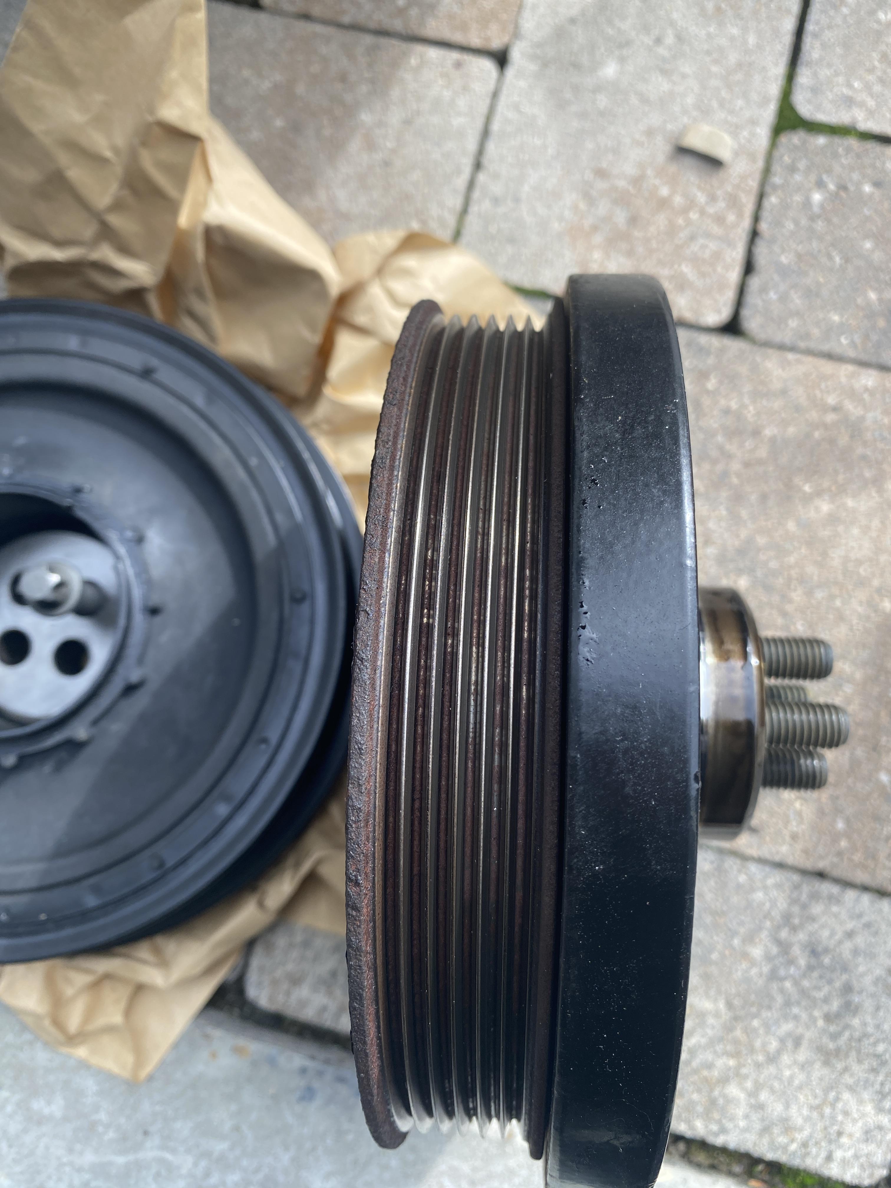 결국에 새소리는 사라졌다. 구 크랭크 풀리는 고무가 갈라지는 문제도 없고 외관은 괜찮은 상태였으나 10년이 넘은 관계로 소음이 발생한듯 하다.