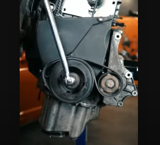 첫시도에서 크랭크 풀리의 e10나사를 풀으려 했으나 크랭크와 같이 돌아가 허탈하게 재조립하고 침울해 하다가. 웹에서 찾은 벨트저항을 이용해 푸는 방식으로 하니 다행히 풀린다. 특수공구를 구매하지 않아도 된다는게 천만다행.