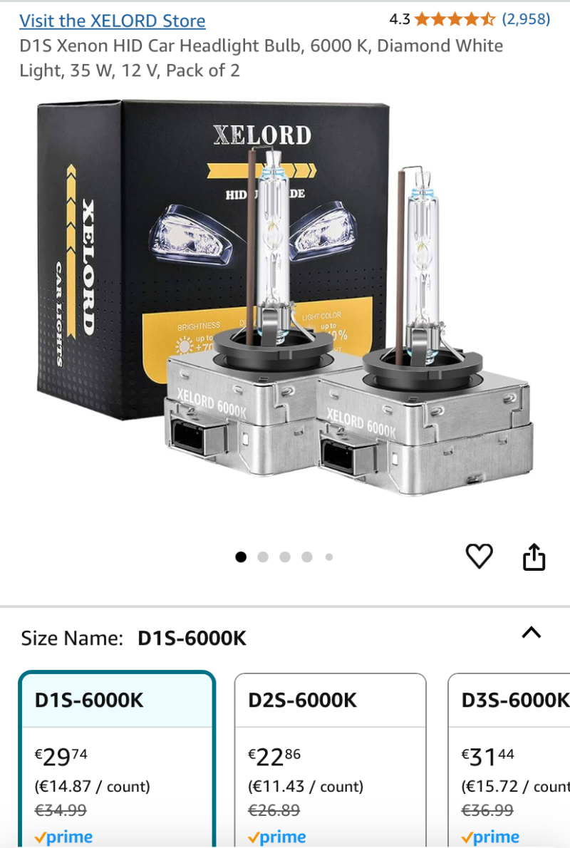 아마존에서 파는 비정품 제논 벌브와 정품 블루제논 벌브는 가격차이가 8배 이상난다. 물론 정품이 성능이 우수하겠지만 4개월 정도 써본바로는 비정품도 운전할때 큰 차이가 없다. 색온도가 낮은걸 해서 오히려 더 밝게 느껴진다.